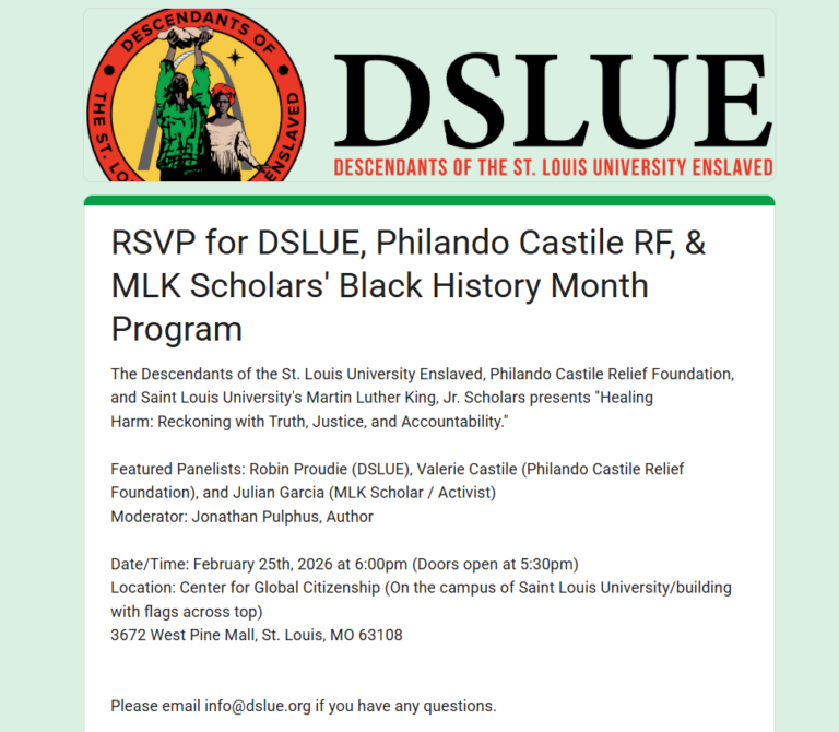 The Descendants of the St. Louis University Enslaved, Philando Castile Relief Foundation, and Saint Louis University’s Martin Luther King, Jr. Scholars presents “Healing Harm: Reckoning with Truth, Justice, and Accountability.”
