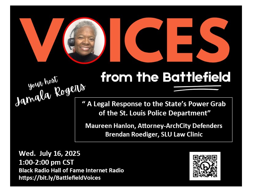 Guests: Maureen Hanlon, Attorney-ArchCity Defenders & Brendan Roediger, SLU Law Clinic – A legal Response to the State’s Power Grab of the St. Louis Police Department – July 16, 2025