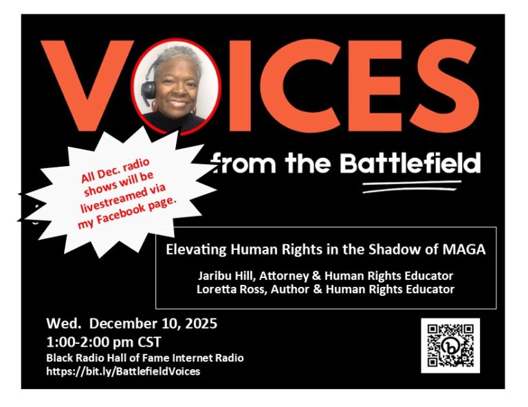Guests: Jaribu Hill, Attorney & Human Rights Educator and Loretta Ross, Author & Human Rights Educator – Elevating Human Rights in the Shadow of MAGA – December 10, 2025
